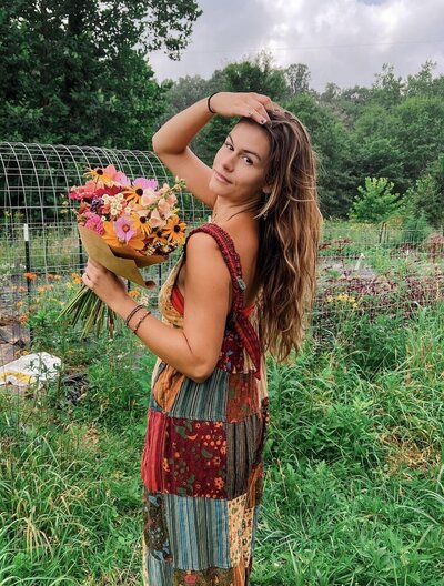 A mother, a gardener, and a dreamer at heart, she grows each stem by hand on her family’s farm "Iris Meadows Farm" — surrounded by music, sunlight, and the rhythm of the seasons.